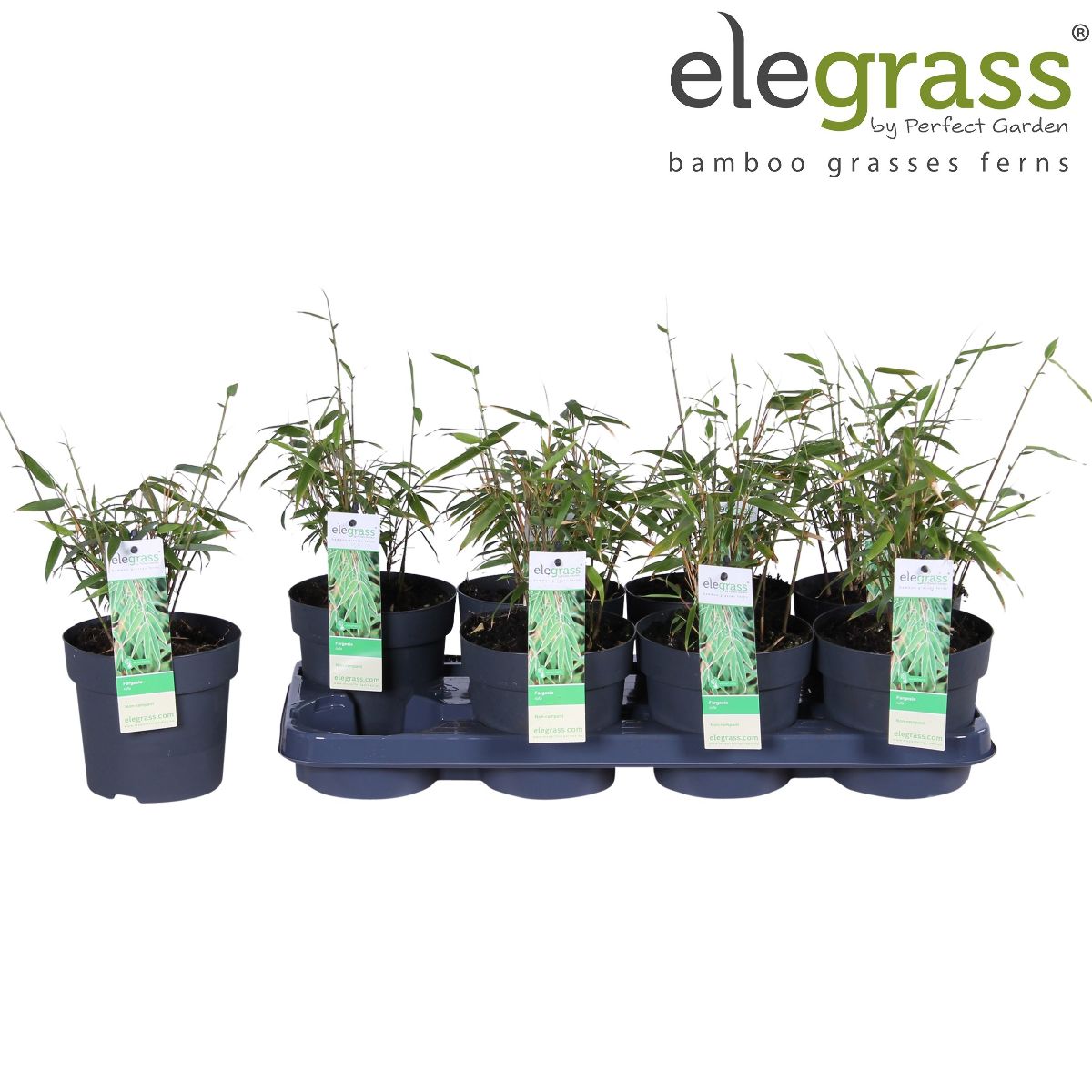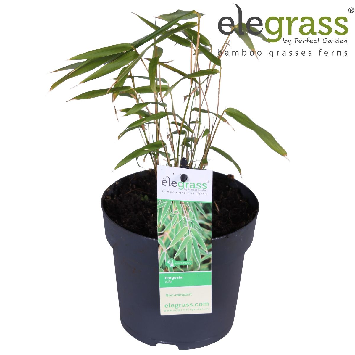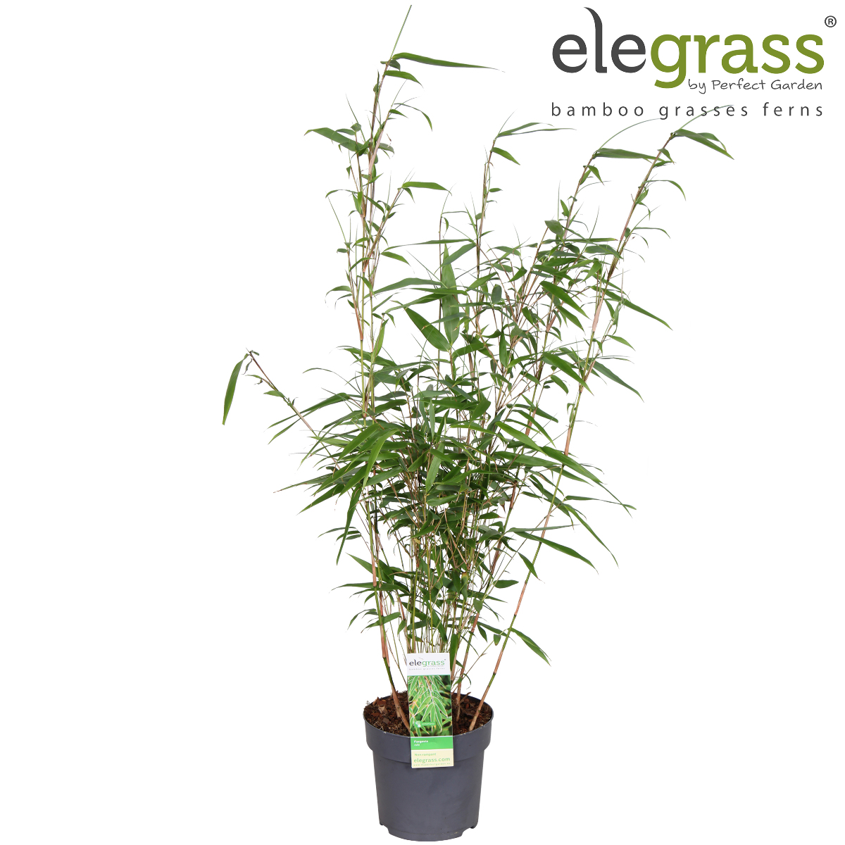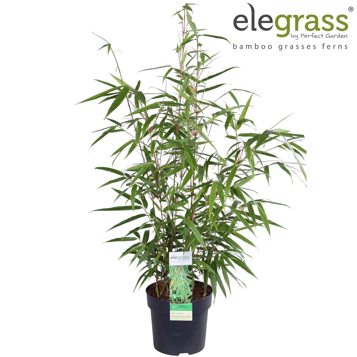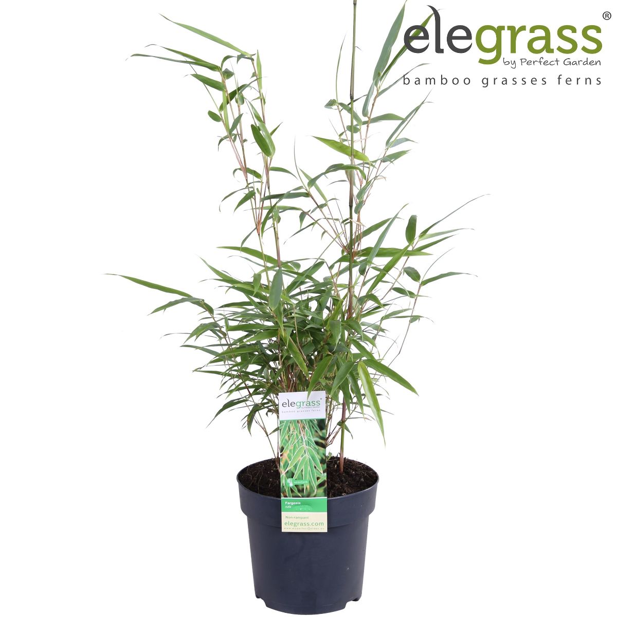 Bargabambu. Exotiskt, kraftfullt gräs med vackra, vintergröna blad som rasslar härligt i vinden. Bör helst stå i skyddat läge i något fuktig jord. Perfekt som solitär vid en damm. Växtzon: 1-3, Fullvuxen: 200 cm, Planteringsavstånd: 150 cm, Ljusbehov: Halvskugga