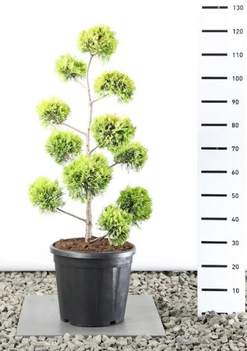 Smalt pyramidformigt barrträd. Snabbväxande. Höjd cirka 7 m. Glest växtsätt. Klart guldgula barr. Tål beskärning mycket bra. Mycket lämplig som häckväxt. Ljus växtplats. Humusrik jordart.