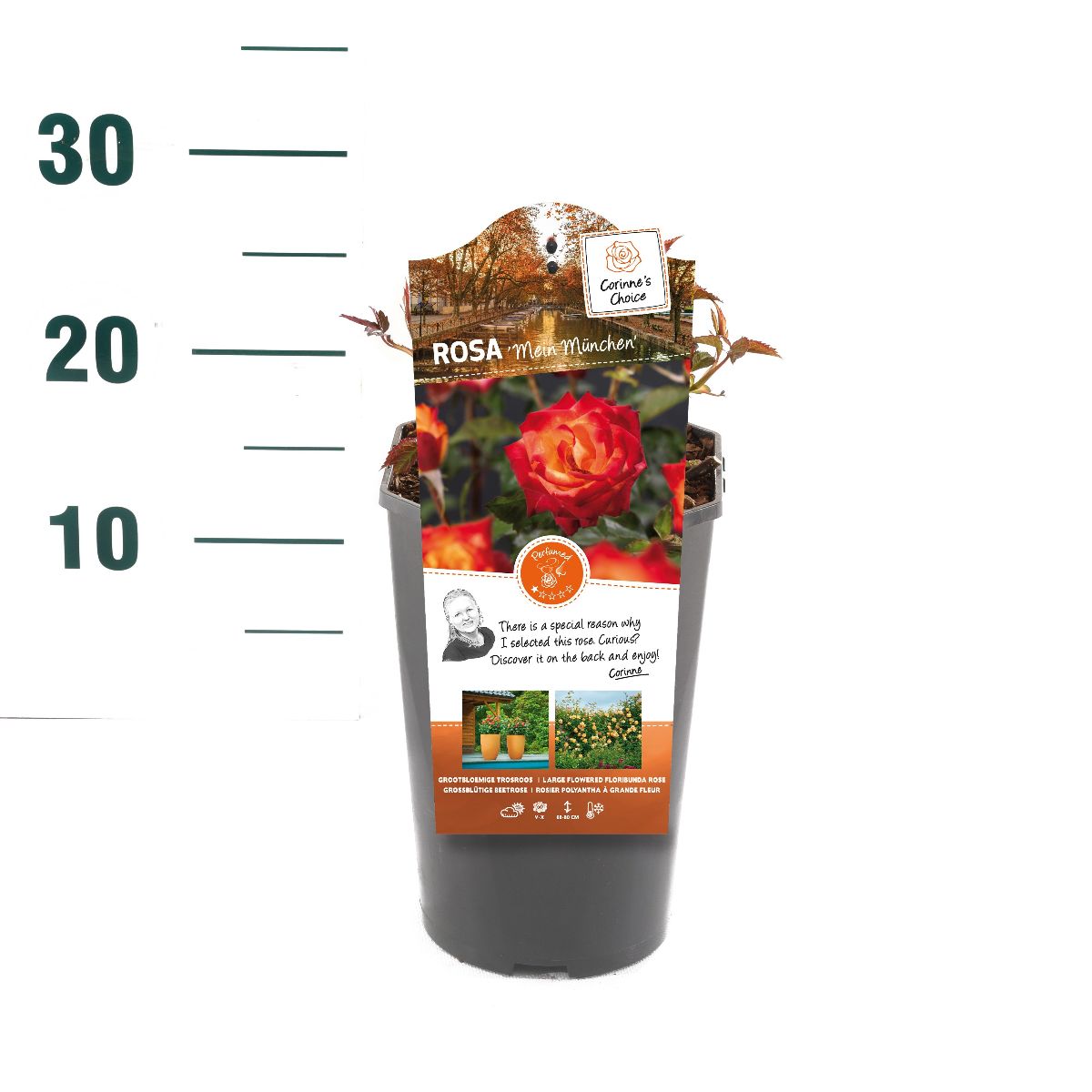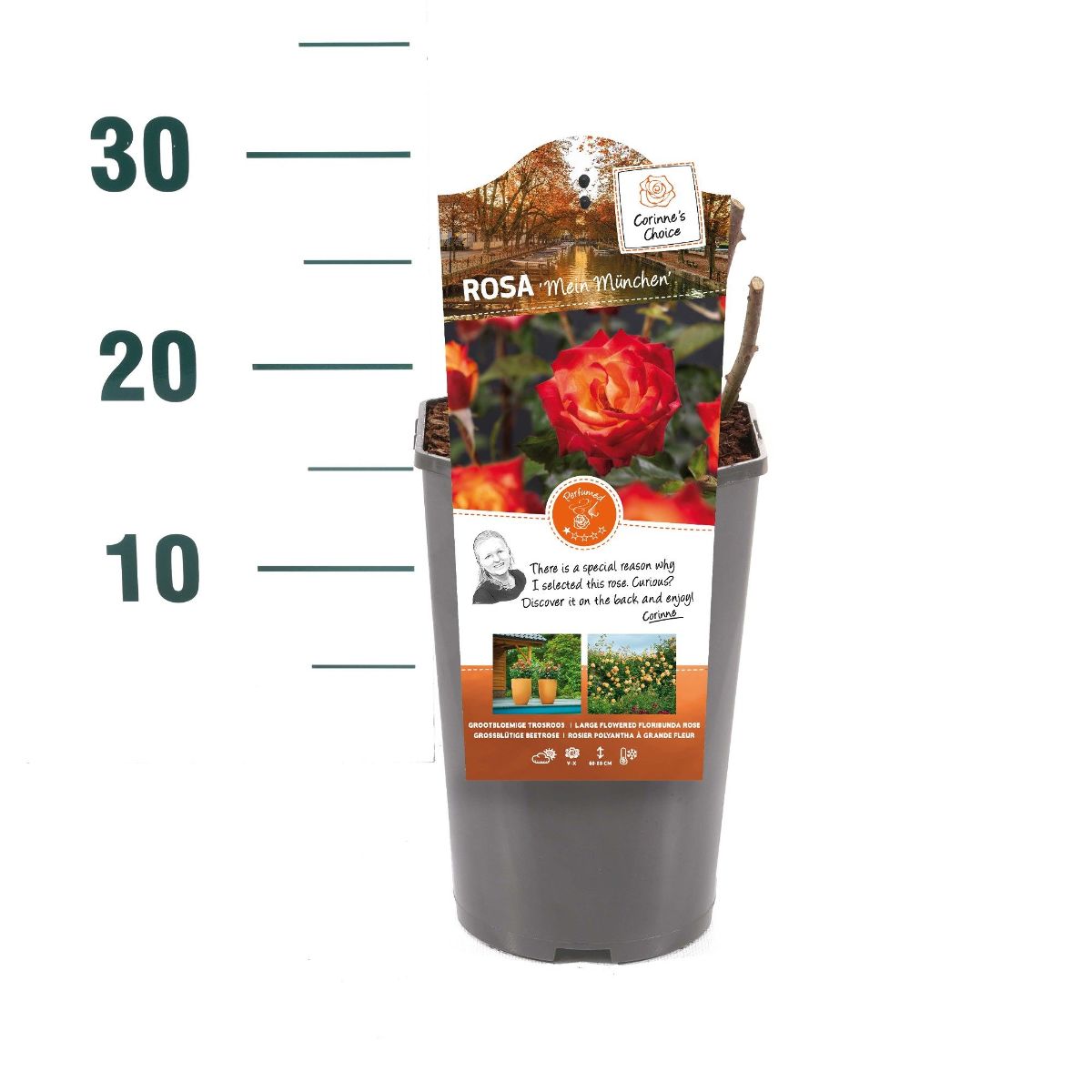 Denna kompaktväxande ros har stora, fyllda blommor med en intensiv färg och en behaglig doft. Blommar rikligt under säsongen och passar utmärkt i rabatter, krukor eller som solitär. Lättskött och tålig mot sjukdomar.