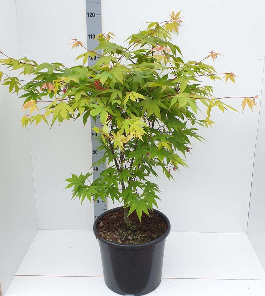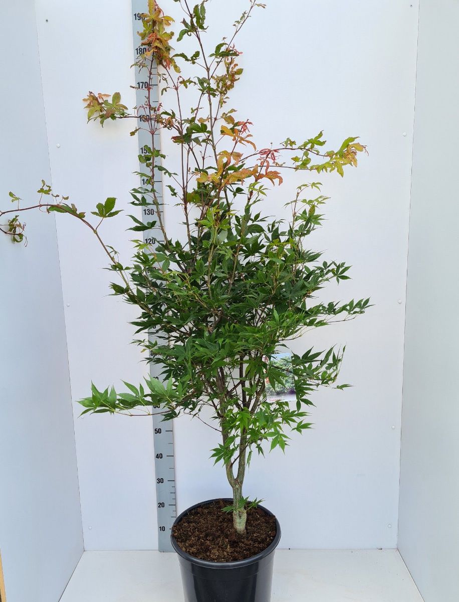 Japansk lönn Zon I-IV.Friskt gröna blad under sommaren som tål mycket sol och en otroligt vacker röda höstfärgen. Växer snabbt de första åren senare ger den mera grenar och växer långsammare.Trivs i torvblandad, kalkfattig, något fukthållande och genomsläpplig jord. Skyddat läge.