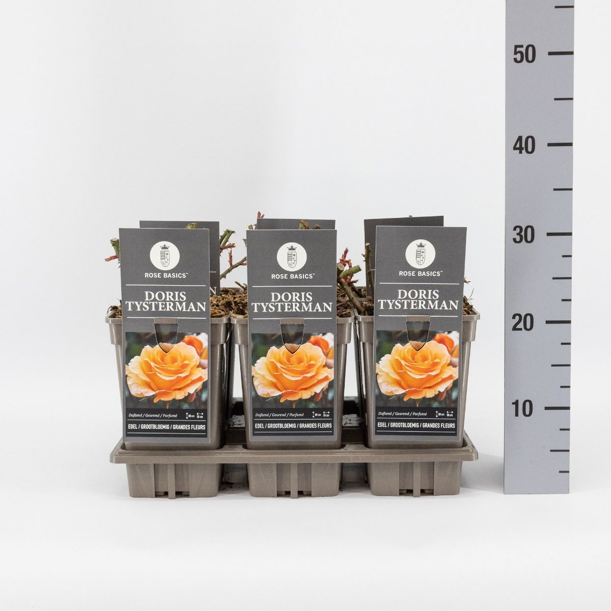 Ros som blommar rikligt och länge. Stora, dubbla kopparorangefärgade blommor på styva stjälkar. Huvudblomning juni - juli. Beskärning efter huvudblomningen ger efterblomning in i oktober. Solig växtplats. Höjd cirka 90 cm.