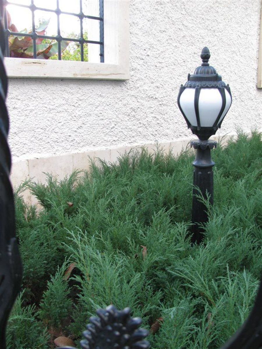 Kraftig barrväxt med brett växtsätt. Höjd drygt 1 m, bredd cirka 2 m. Grenarna pekar utåt och snett uppåt. Grågröna barr. Tål lätt skugga. Tål beskärning. Mycket vintertålig.
