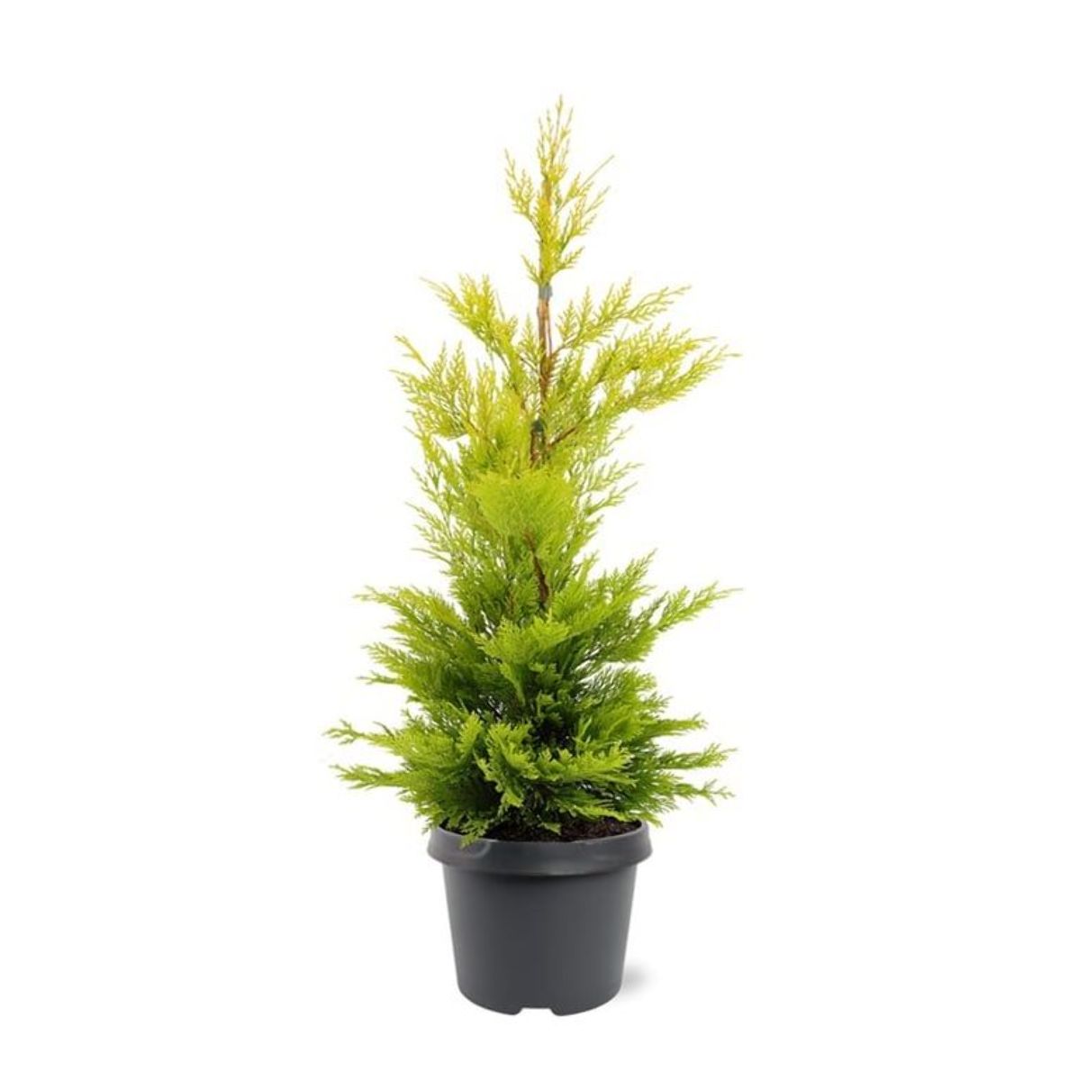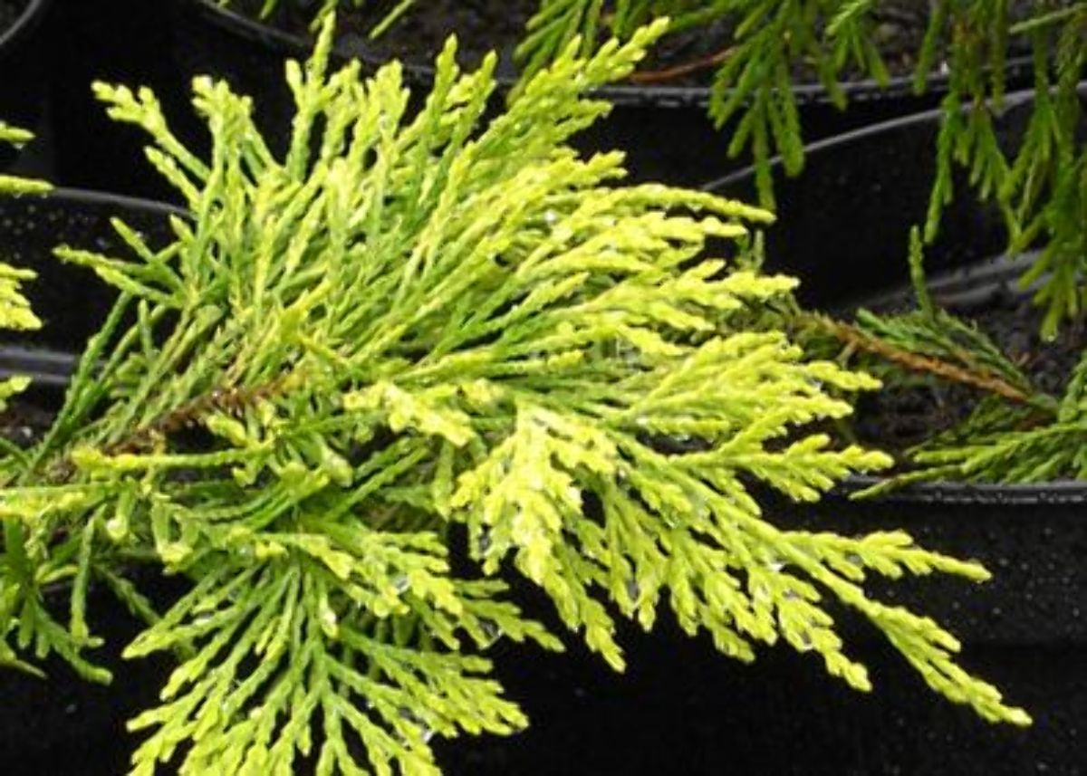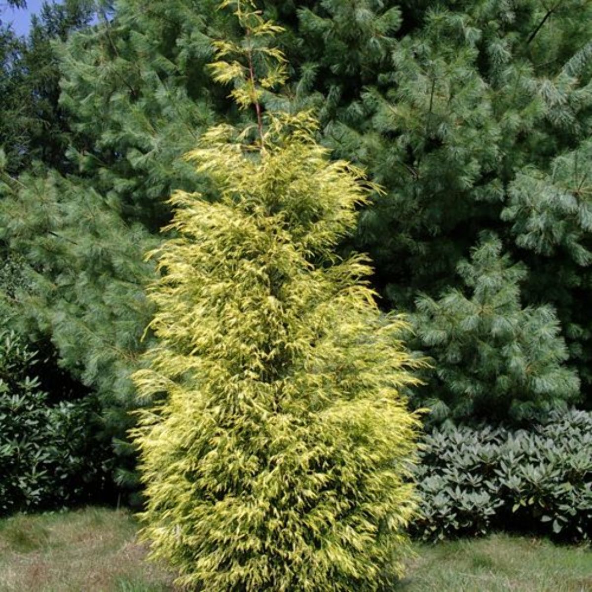 Smalt pyramidformigt barrträd. Snabbväxande. Höjd cirka 7 m. Glest växtsätt. Klart guldgula barr. Tål beskärning mycket bra. Mycket lämplig som häckväxt. Ljus växtplats. Humusrik jordart.