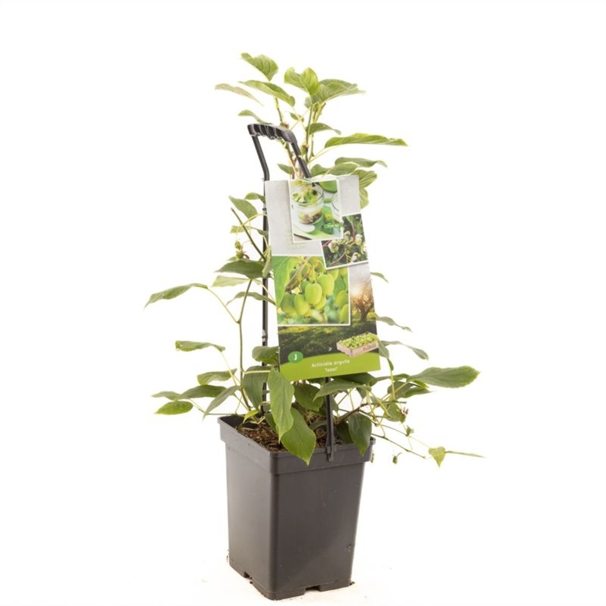 Kraftigt växande bladfällande klätterväxt. Höjd, upp till 8 meter. Bladen är stora och grovt håriga. Diskreta blommor. Självpollinerande varietet med stora ätbara kiwifrukter. Sol. Skyddad växtplats.