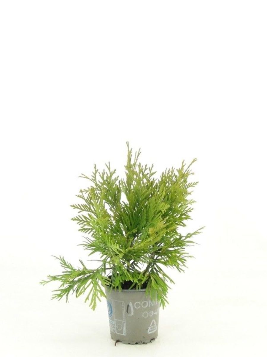Smal, pyramidformigt växande barrväxt. Höjd cirka 2 - 3 m, bredd cirka 1 m. Kompakt växtsätt. Klargula barr, mörkgula på vintern. Tål beskärning, används som häckväxt. Ljus växtplats. Humusrik jordart.