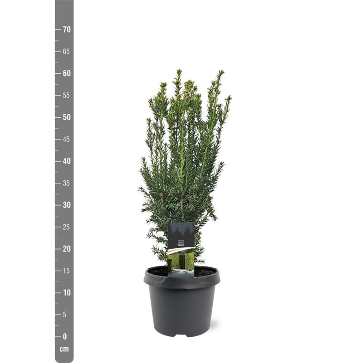 Pelarformig barrväxt. Höjd 3 - 4 m, bredd 1,5 m. Mörkgröna, glänsande barr. För en näringsrik, och inte alltför våt växtplats. Klarar lätt skugga. Mycket tålig mot beskärning. Bra häckväxt.