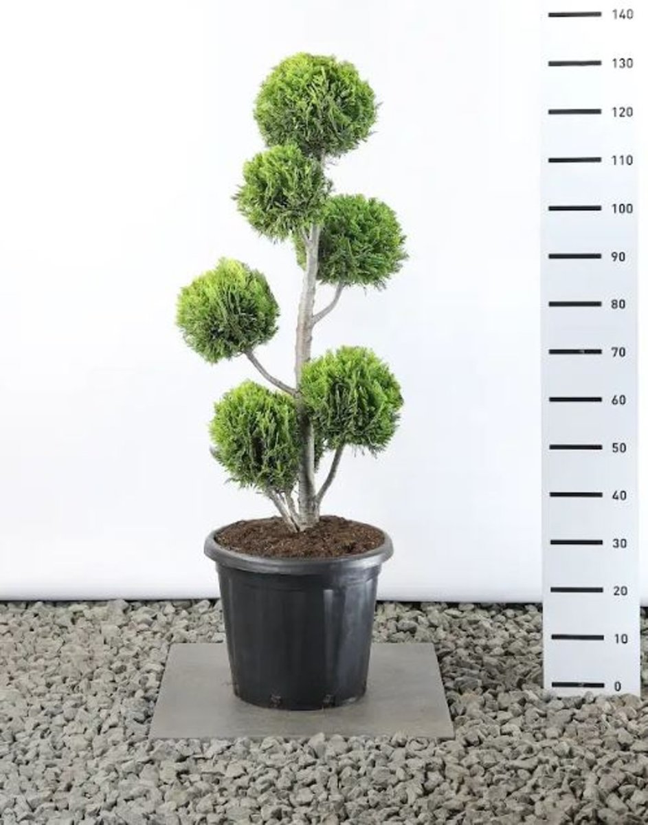 Smal, pyramidformigt växande barrväxt. Höjd cirka 4 m, bredd cirka 1,5 m. Kompakt växtsätt. Guldgula barr. Tål beskärning bra, används som häckväxt. Ljus växtplats. Humusrik jordart.