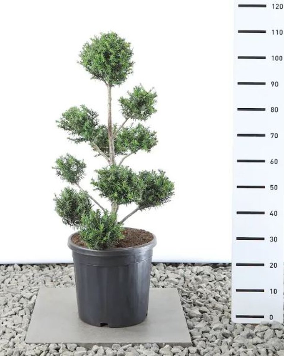 Kraftig barrväxt som kan växa ut till ett litet träd. Växer långsamt. Höjd upp till cirka 10 m. Mörkgröna, glänsande barr. Mycket beständig mot beskärning. Bra häckväxt. Näringsrik, ej alltför våt jord.