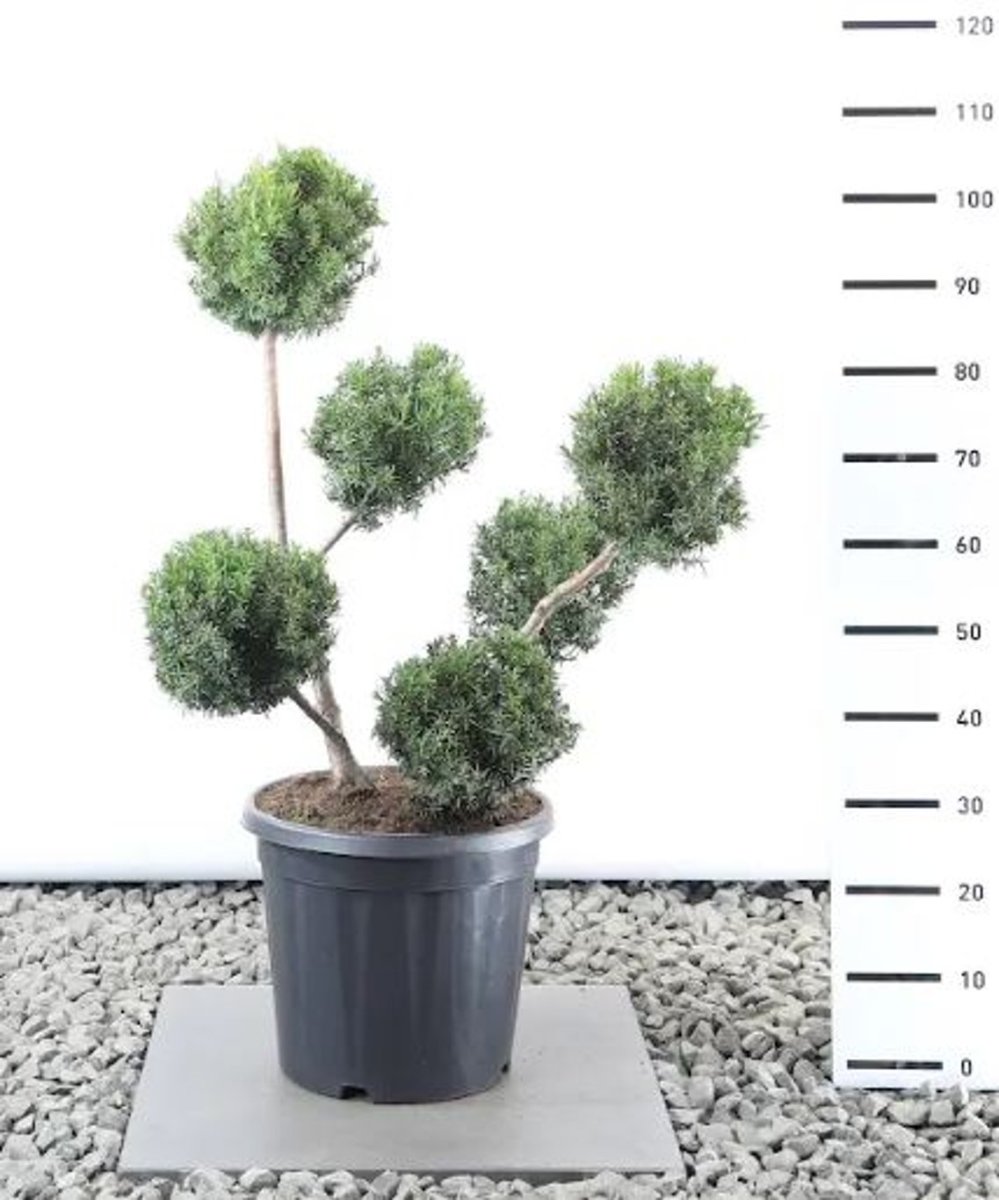 Lågt utbrett växtsätt. Höjd 1-1,5 m. Hanklon. Gröna barr. Trivs i sol till skugga. Används som grupper, häckar och solitärer. Zon 1-5.
