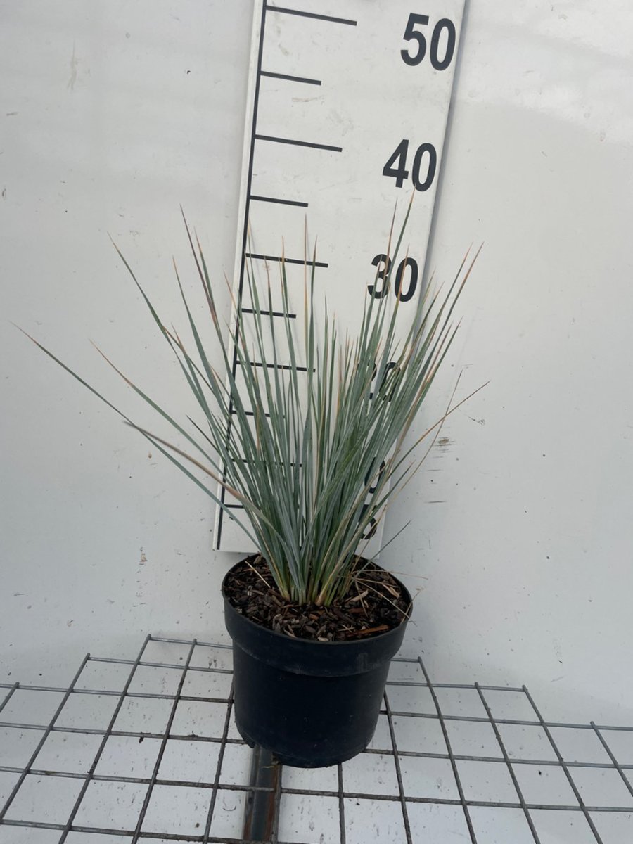 Vintergrönt prydnadsgräs med styva blågrå blad. Höjd cirka 80 cm. Gullila blomställningar i maj - juni. Ändrar färg till halmgult. Sol - lätt skugga. Kräver väl dränerad, humusrik jord. Vacker solitärväxt.
