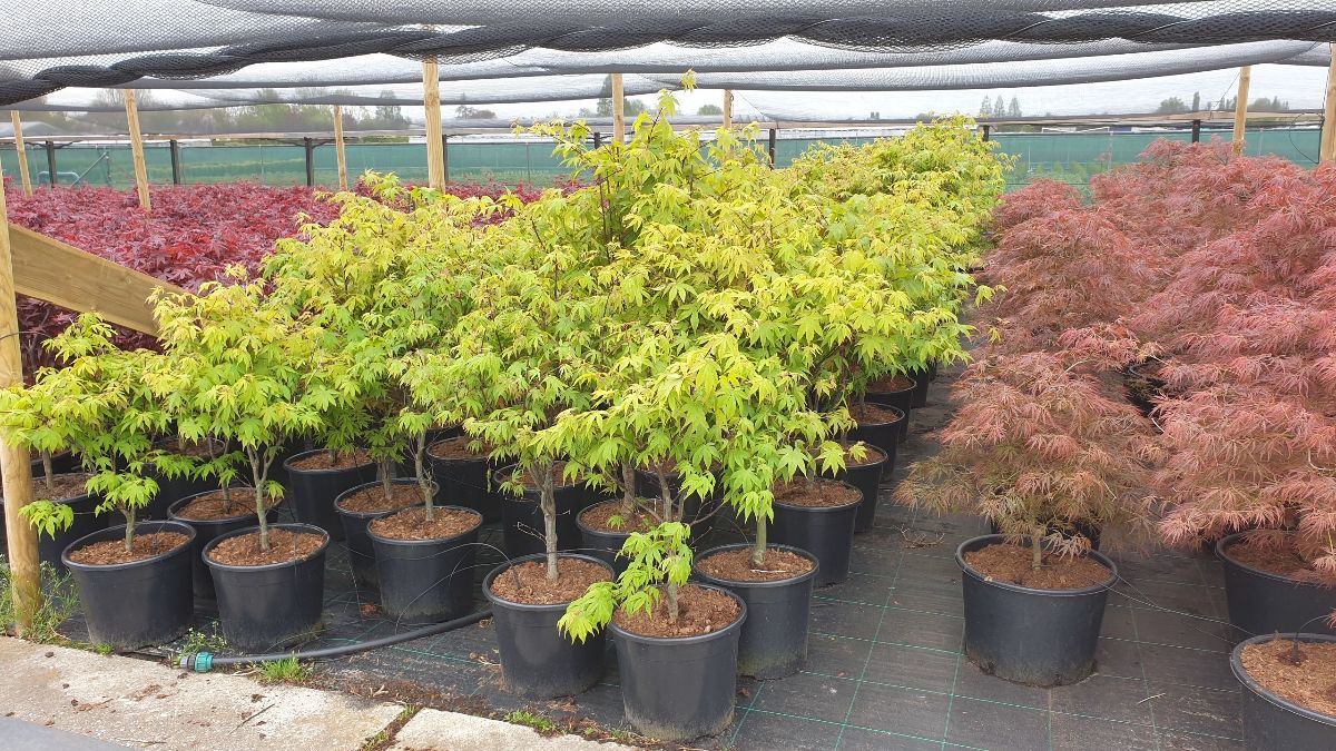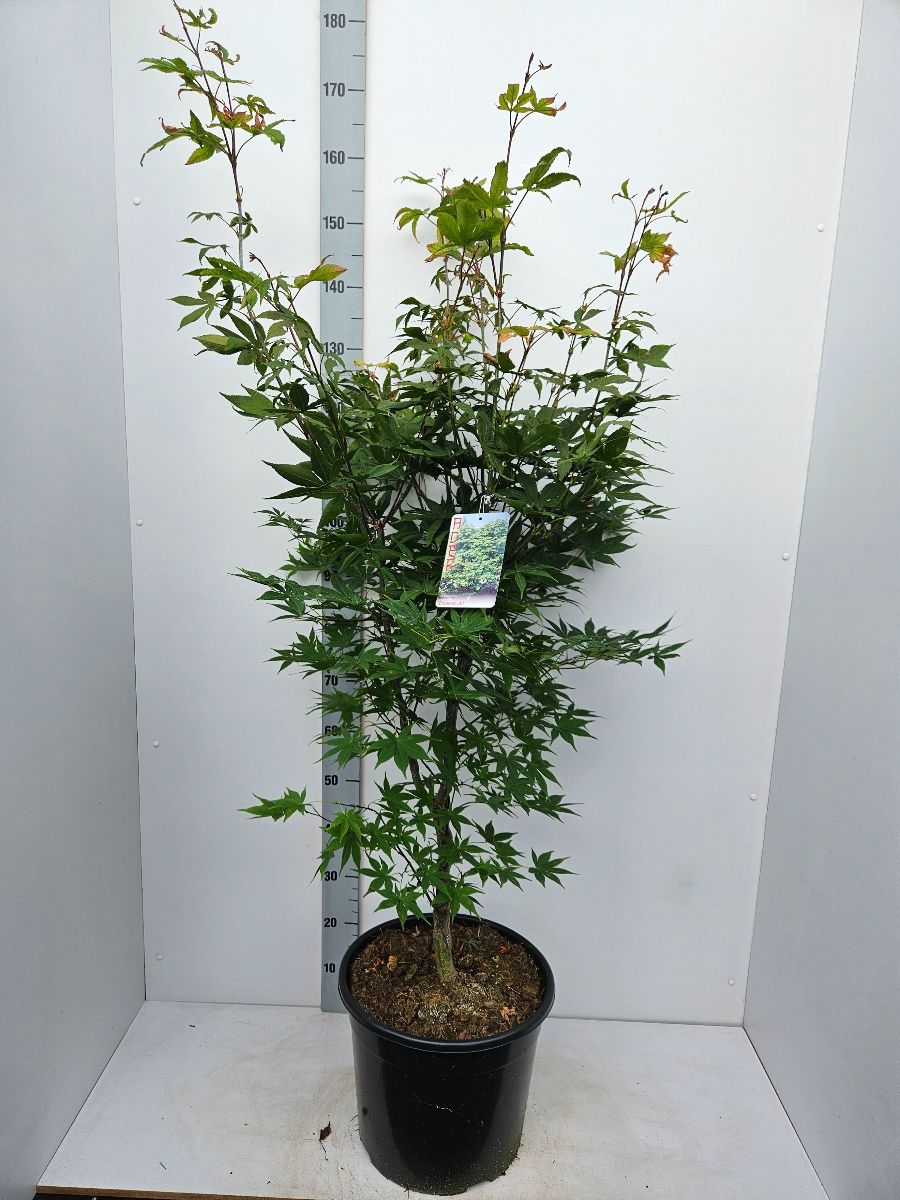 Japansk lönn Zon I-IV.Friskt gröna blad under sommaren som tål mycket sol och en otroligt vacker röda höstfärgen. Växer snabbt de första åren senare ger den mera grenar och växer långsammare.Trivs i torvblandad, kalkfattig, något fukthållande och genomsläpplig jord. Skyddat läge.