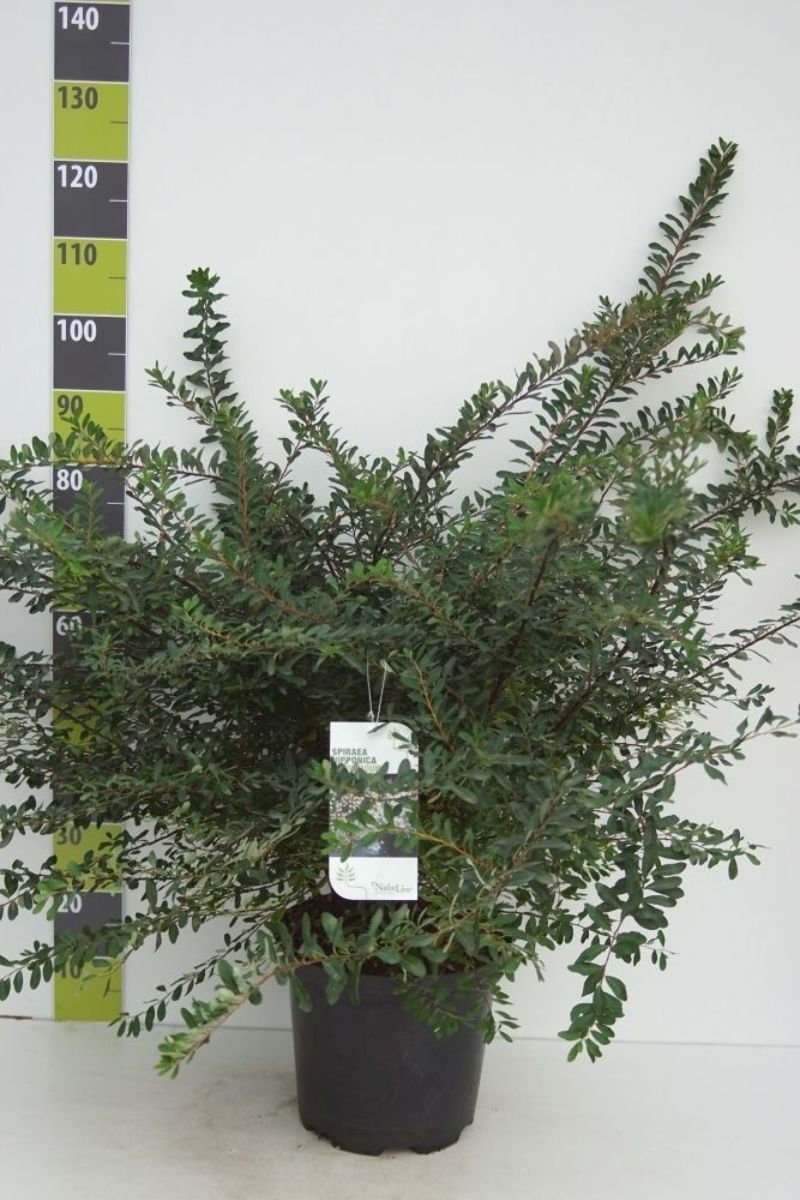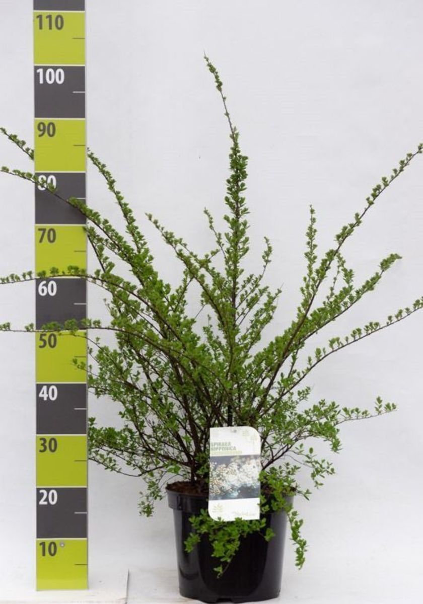Upp till 1,5 m hög buske. Överhängande kvistar. Smala mörkgröna blad. Bladfällande. Klarvita blommor i små flockar. Blommar rikligt. Maj - juni. Skär varje år bort några gamla kvistar. Alla jordtyper. Sol.