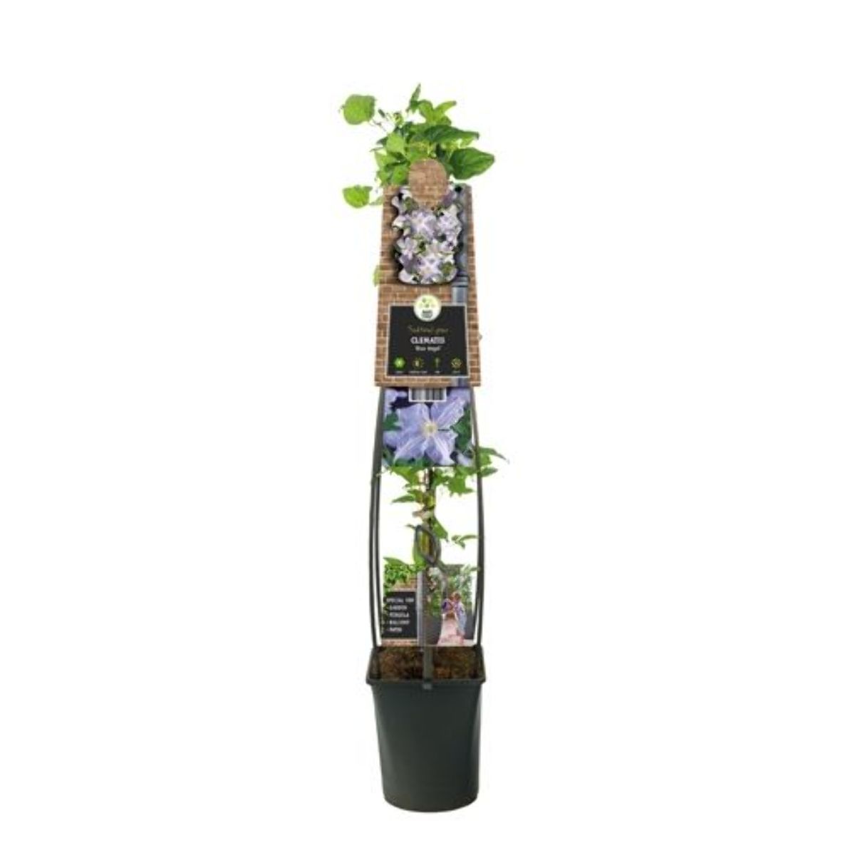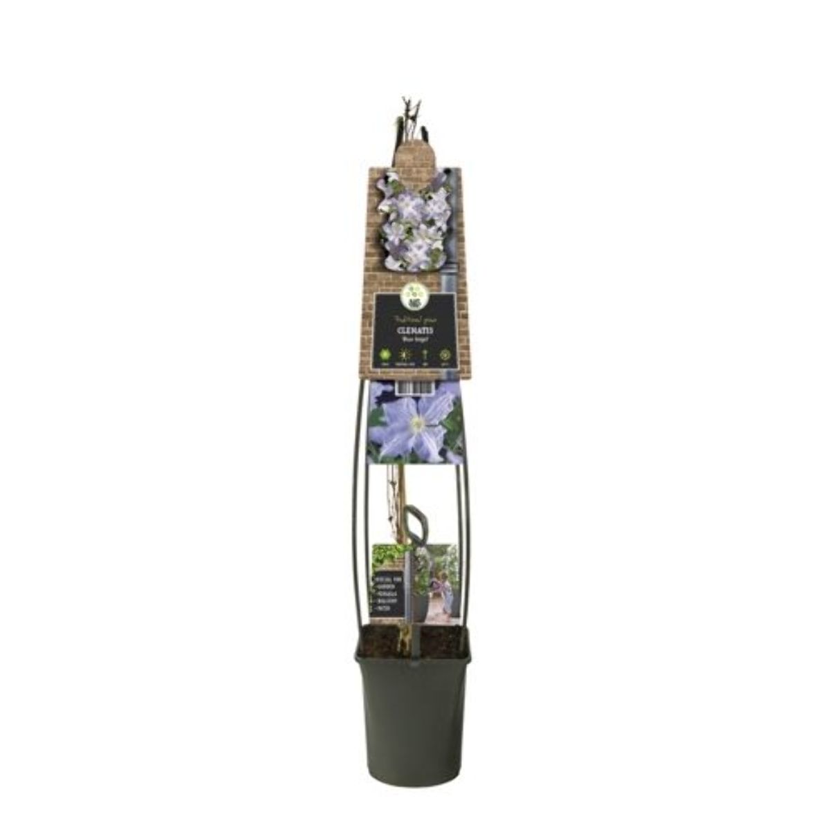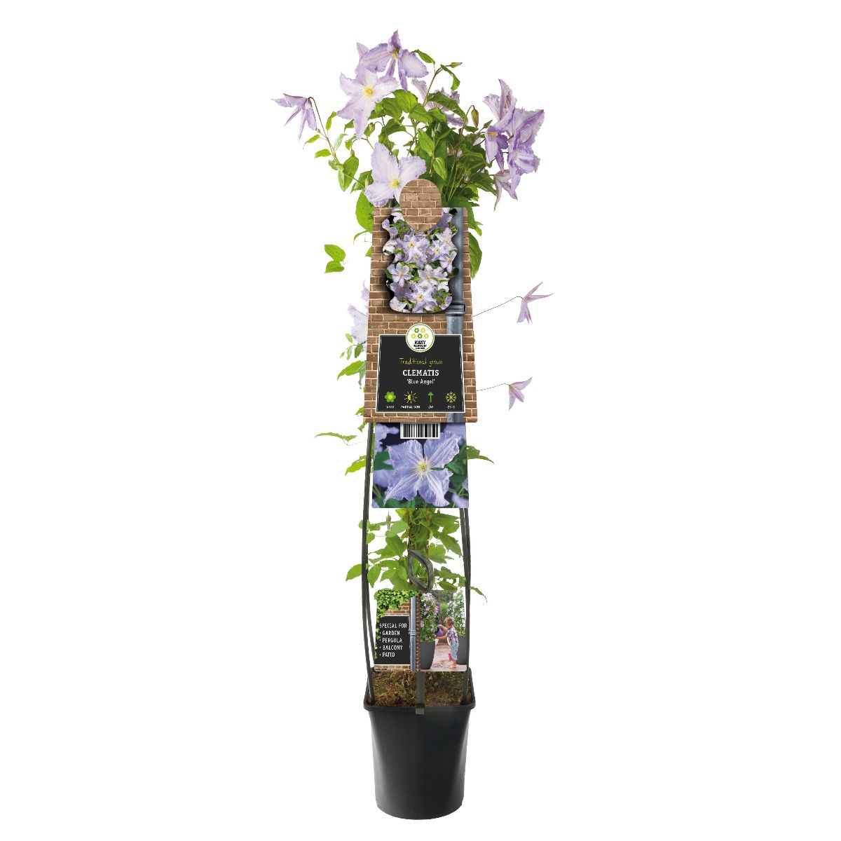 Bladfällande, kompakt klätterväxt som blir upp till 3 meter hög. Blommar från juni till oktober. Blommorna är cirka 10 cm i diameter. Milt blå. Blommar rikligt. Solig växtplats. Näringsrik jord. Beskär eventuellt efter vintern.